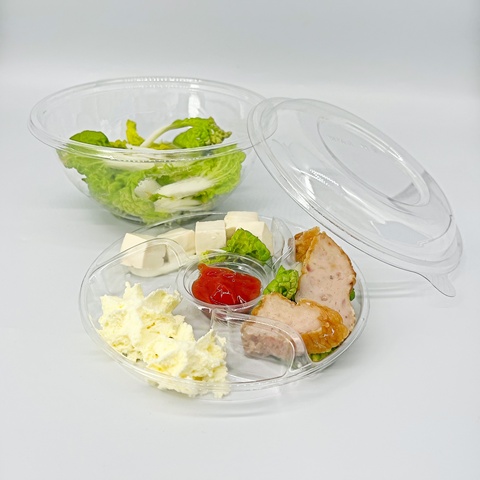 Contenitore per alimenti scatola da asporto per insalatiera e confezione di biscotti ciotola quadrata ciotola per zuppa per feste con coperchio plastica PET plastica trasparente